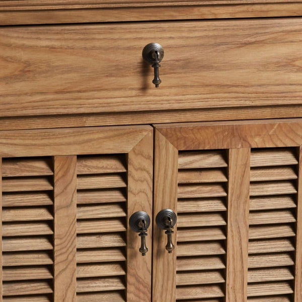 Slatted door detailing and antique brass knocker style hardware, the ever-popular Louvre (Bed)Side Table is perfect for creating a Hampton-inspired or coastal look!