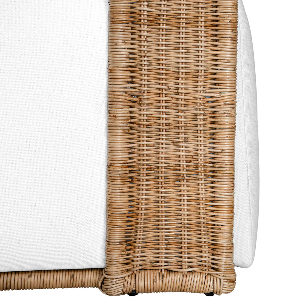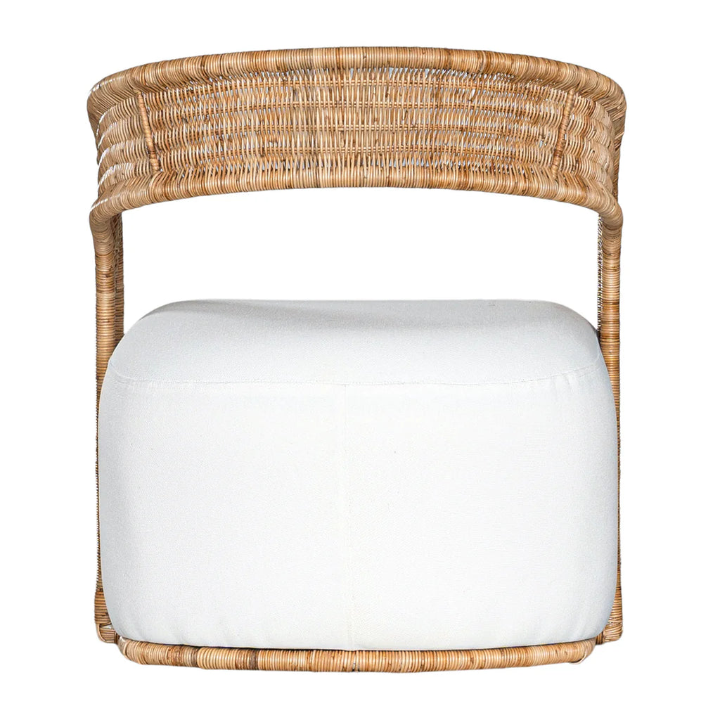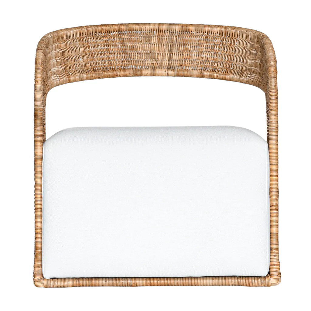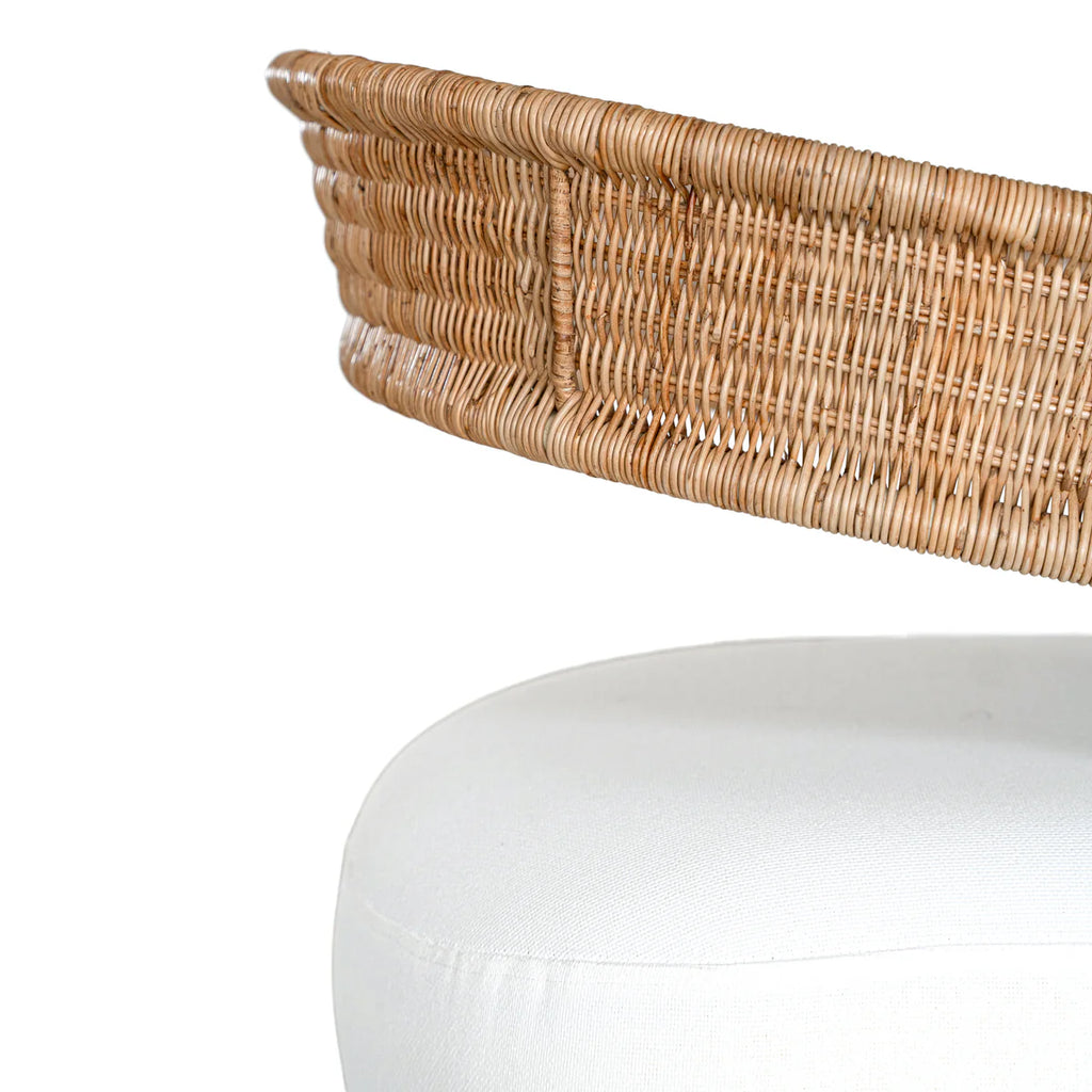 Expertly crafted, this chair features a gracefully curved design and a frame covered in handwoven natural rattan, creating a timeless and elegant look.