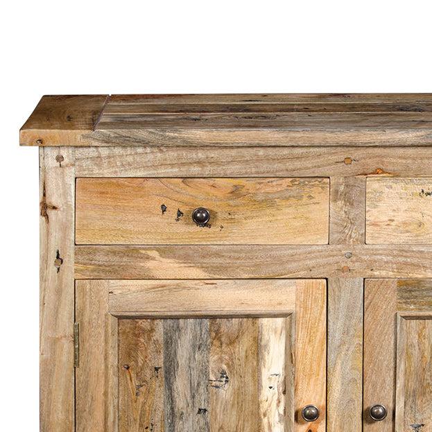 This cabinet will come in useful all over your home when you need a little bit of extra storage space. Suiting country style interiors, this 100% solid mango wood unit has been built with sustainably sourced timbers in a hand-distressed oak-ish finish and has two drawers and two cabinets that come with shiny knob handles.