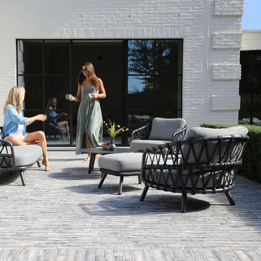 Discover the allure of the Flores Collection, a captivating outdoor furniture range that redefines elegance. Immerse yourself in the artful craftsmanship of geometric rope detailing, intricately woven to create a distinctive visual appeal, harmonizing seamlessly with a robust metal frame.