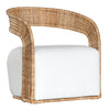 Expertly crafted, this chair features a gracefully curved design and a frame covered in handwoven natural rattan, creating a timeless and elegant look.