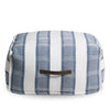 At home in any space, the Bourne Ottoman is made from natural cotton with a beautifully detailed white and ocean blue striped pattern, further boasting a flanged edge and leather handle for easy moving.