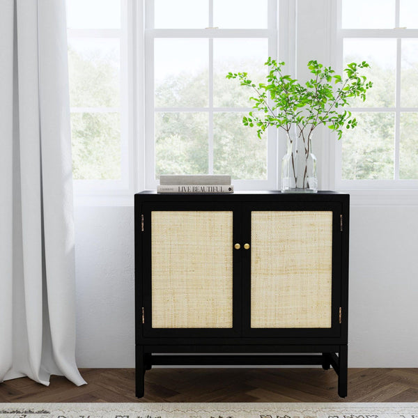 MORA STORAGE CABINET | 2-DOOR | BLACK +NATURAL RAFFIA
