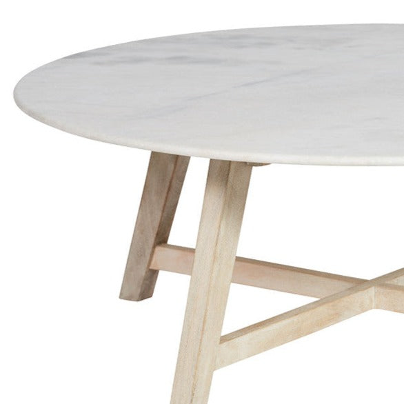 The new classic, the Irving Side Table is crafted with white washed mango wood timber legs and a white marble top making each piece uniquely one of a kind