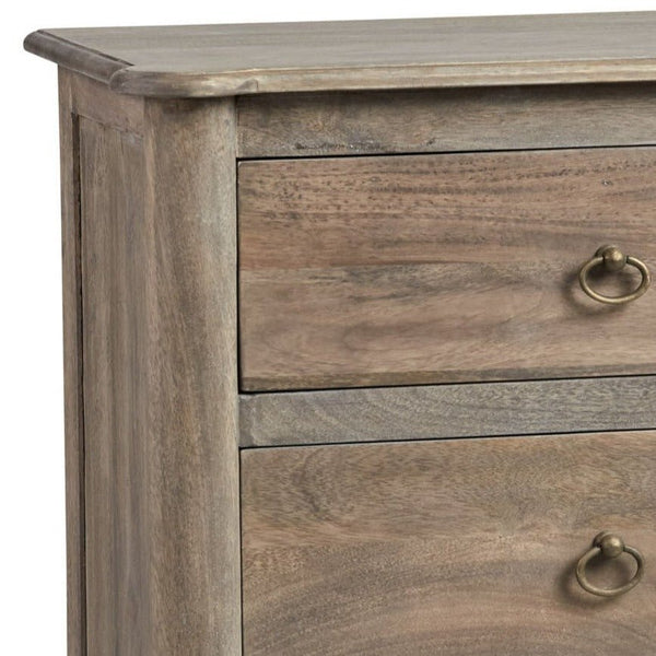 Made from solid mango wood with a grey timber wash antique brass hardware and a contemporary yet classic French design the Halston range will bring added dimension to your bedroom as well as providing plenty of extra storage