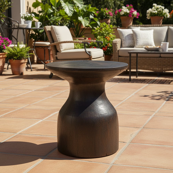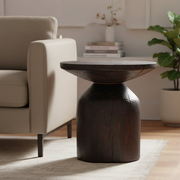 HOURGLASS STOOL - SIDE TABLE | DARK WALNUT