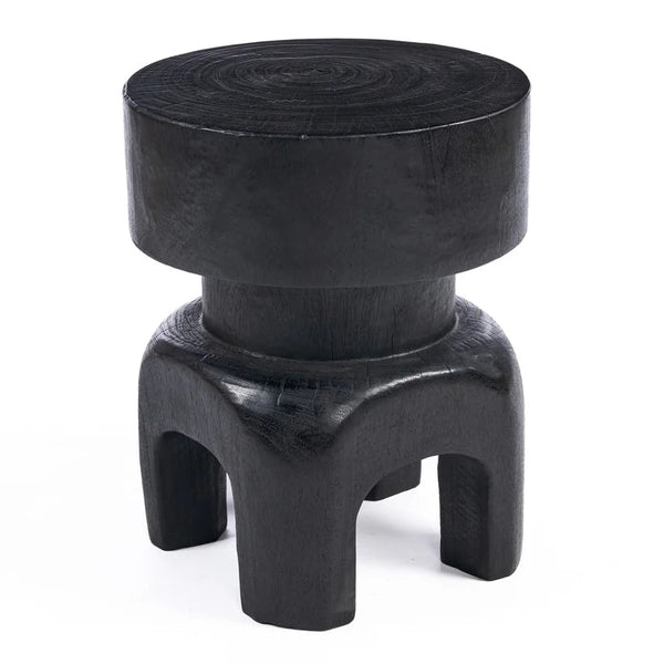 TIMMA CARVED SIDE TABLE +STOOL | NATURAL