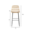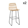 A beautiful barchair featuring a natural-colored rattan seat and a sturdy black metal base.