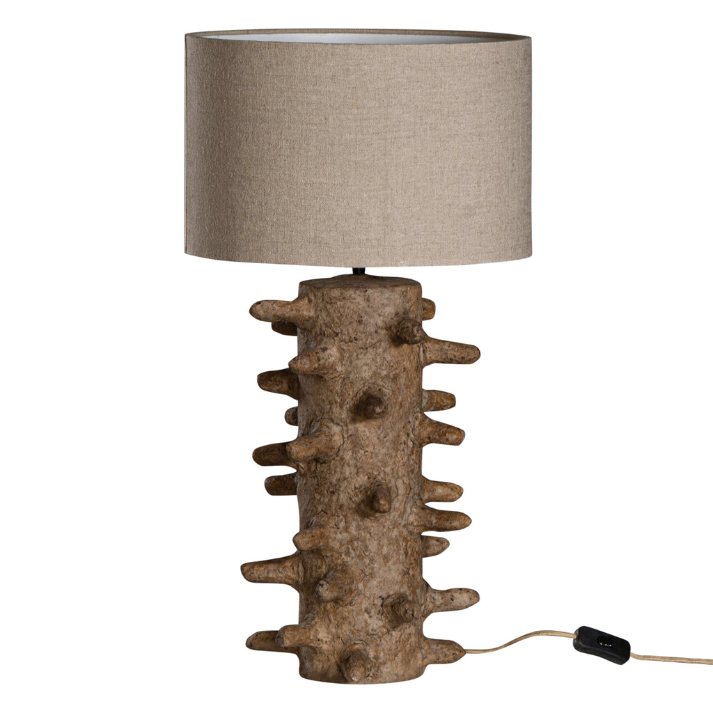 The base is handcrafted from eco-friendly papier-maché, the shade is 100% linen