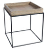 The Mariner Side Table features black stream-lined Iron legs with a square tray top in Mango Wood that has been sand blasted for a vintage finish, the result is character filled nautical inspired table.