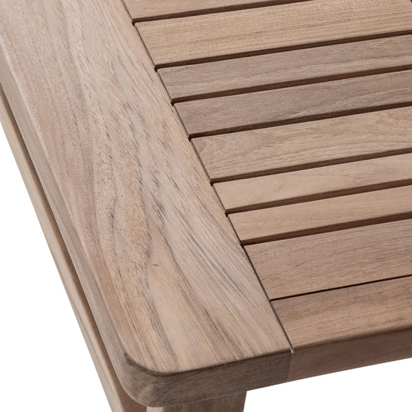 The Norfolk Rectangular Coffee Table, a stunning outdoor centerpiece with a refined teak finish enhanced by a protective Teakshield coating.