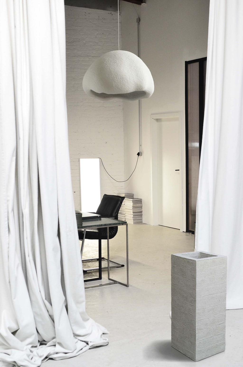 Here, the cycle of the journey of thoughts is symbolically understood, when they lie down on paper, which we later use in the production of cloud-shaped lamps.