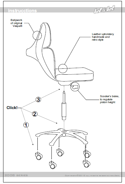 By re-using the chassis they have created an original and unique model of swivel chair. Not everyone can pull off riding a Vespa around town, but anyone would look damn fine sitting in one of these swivel chairs, no mod outfit or goggles necessary. These chairs are manufactured, customized and handmade in numbered series, which makes each piece unique. Each chair comes with a certificate of authenticity.
