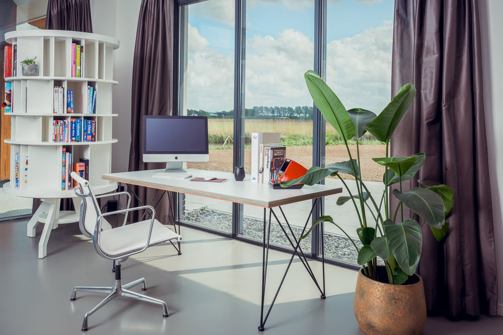 The lines are continuous and go all the way around the table top. The base of the table is made from matte black powder coated steel. We work only with wood that has a sustainable forestry label.