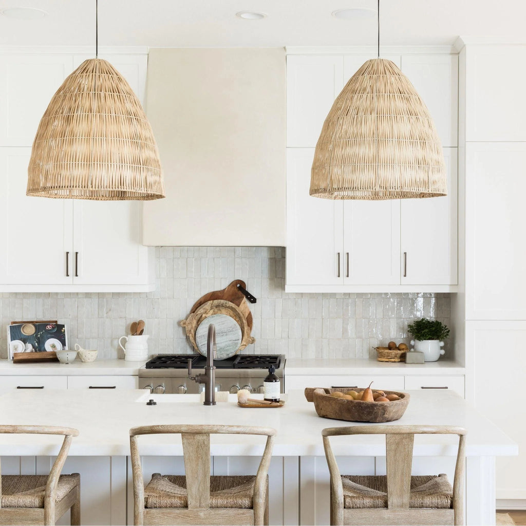 The natural rattan fibers of the Folk Pendant make it a go-to choice for adding warmth and texture to a space. The woven build allows a large throw of light and maintains a breezy and relaxed aesthetic.