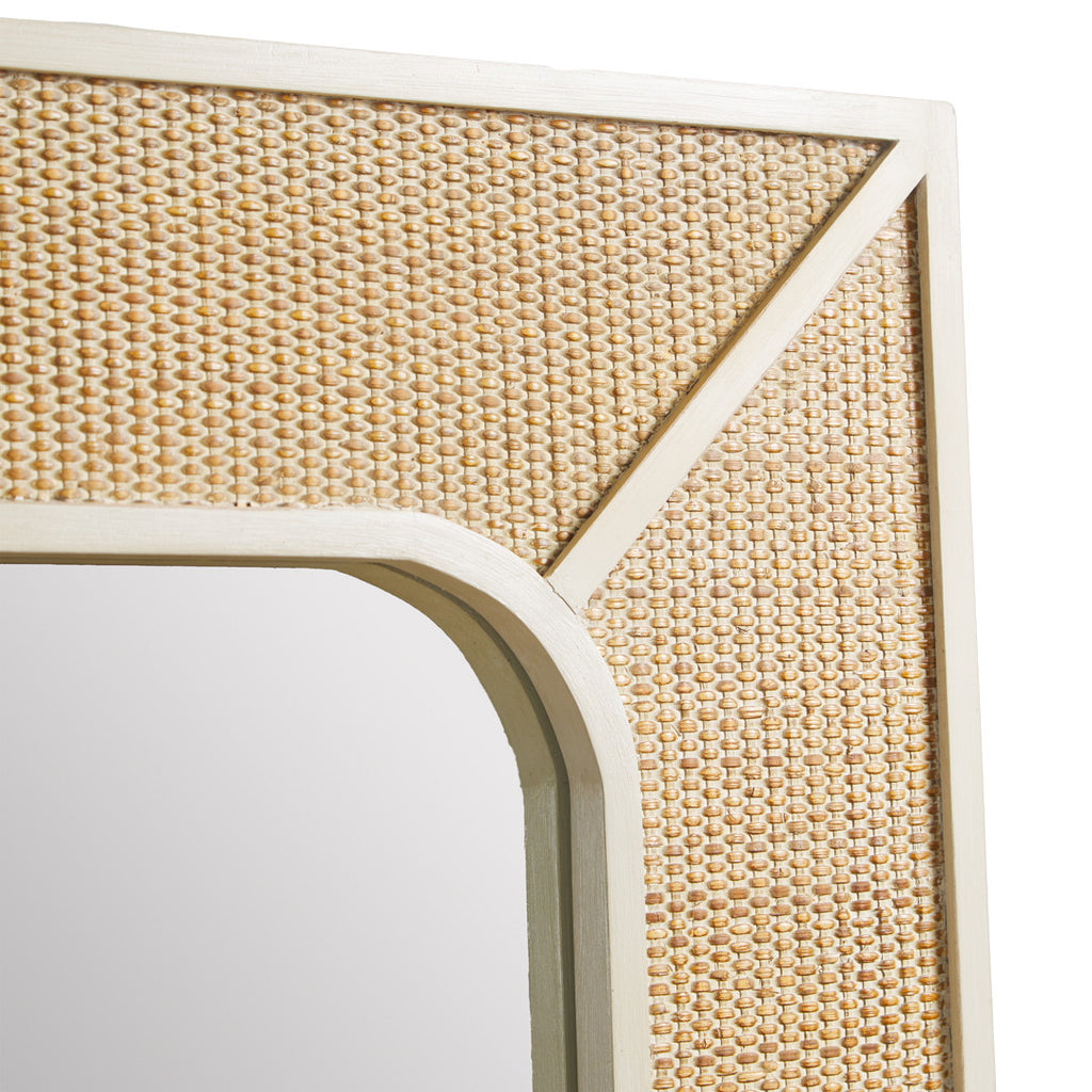Featuring a rectangular design with a natural woven rattan frame accented by crisp white trim, this mirror captures the essence of organic texture and subtle sophistication. The clean, rounded edges and thoughtful details make it a versatile piece that enhances both casual and refined interiors.