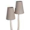 • Materials: Hand-crafted sustainable papier maché base in an antique mud finish, linen shade.