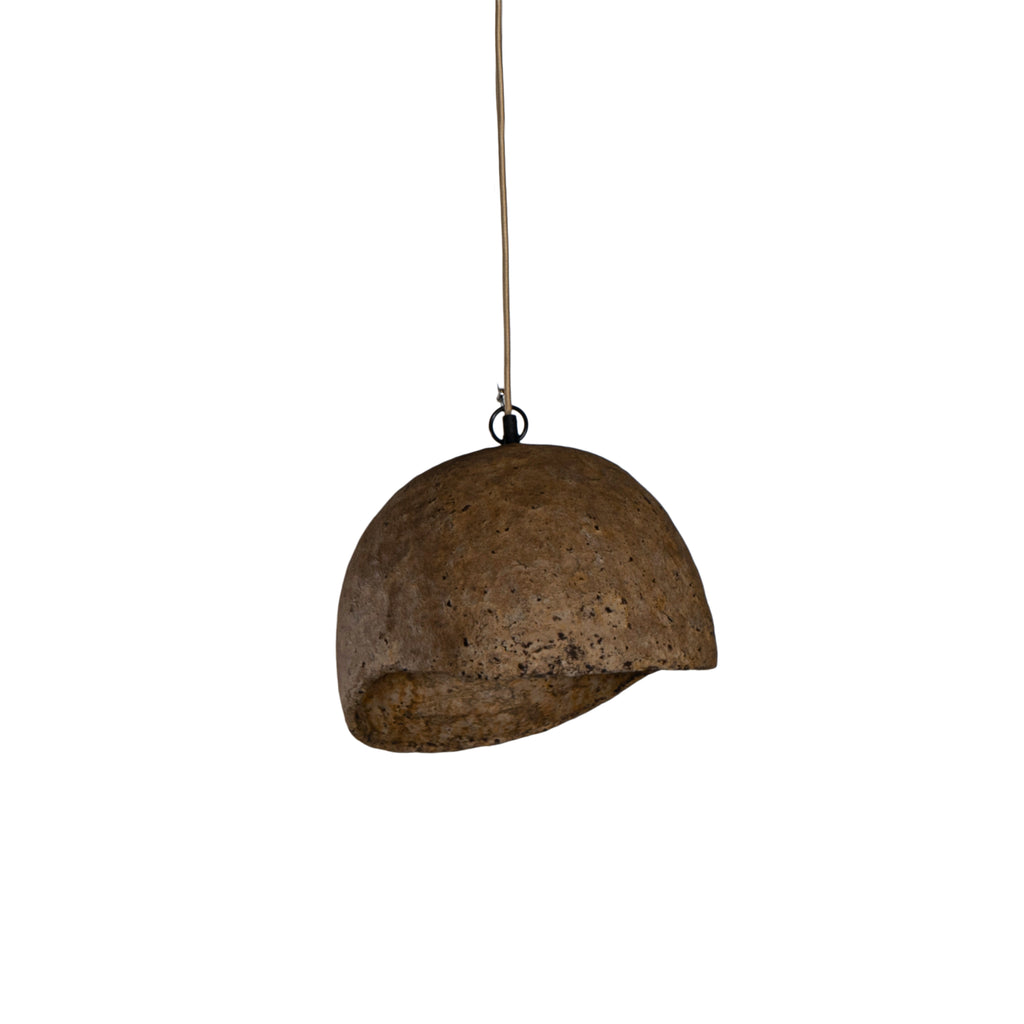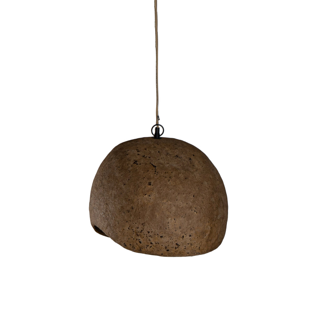 • Expertly crafted from eco-friendly papier-mâché with an antique mud finish, this piece exudes organic beauty. It includes a rope-like electric fitting, adding a touch of organic elegance to any setting.