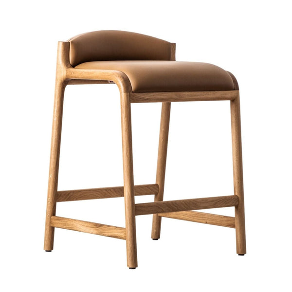 ELSA UPHOLSTERED BAR CHAIR | 66 CM | SADDLE CAMEL LEATHER
