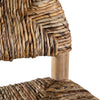 Its frame, meticulously crafted from teak, features robust, rounded legs and a gracefully curved backrest that exudes organic elegance. The seat is handwoven from natural Abaca Lorek, an eco-friendly fibre known for its strength and durability, showcasing a stunning four-way cross-webbing pattern in rich, earthy brown tones.