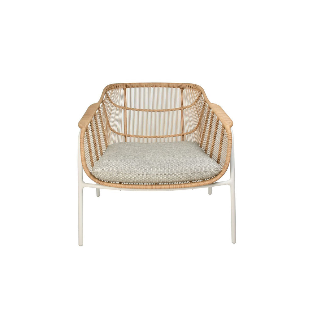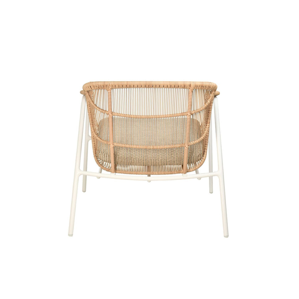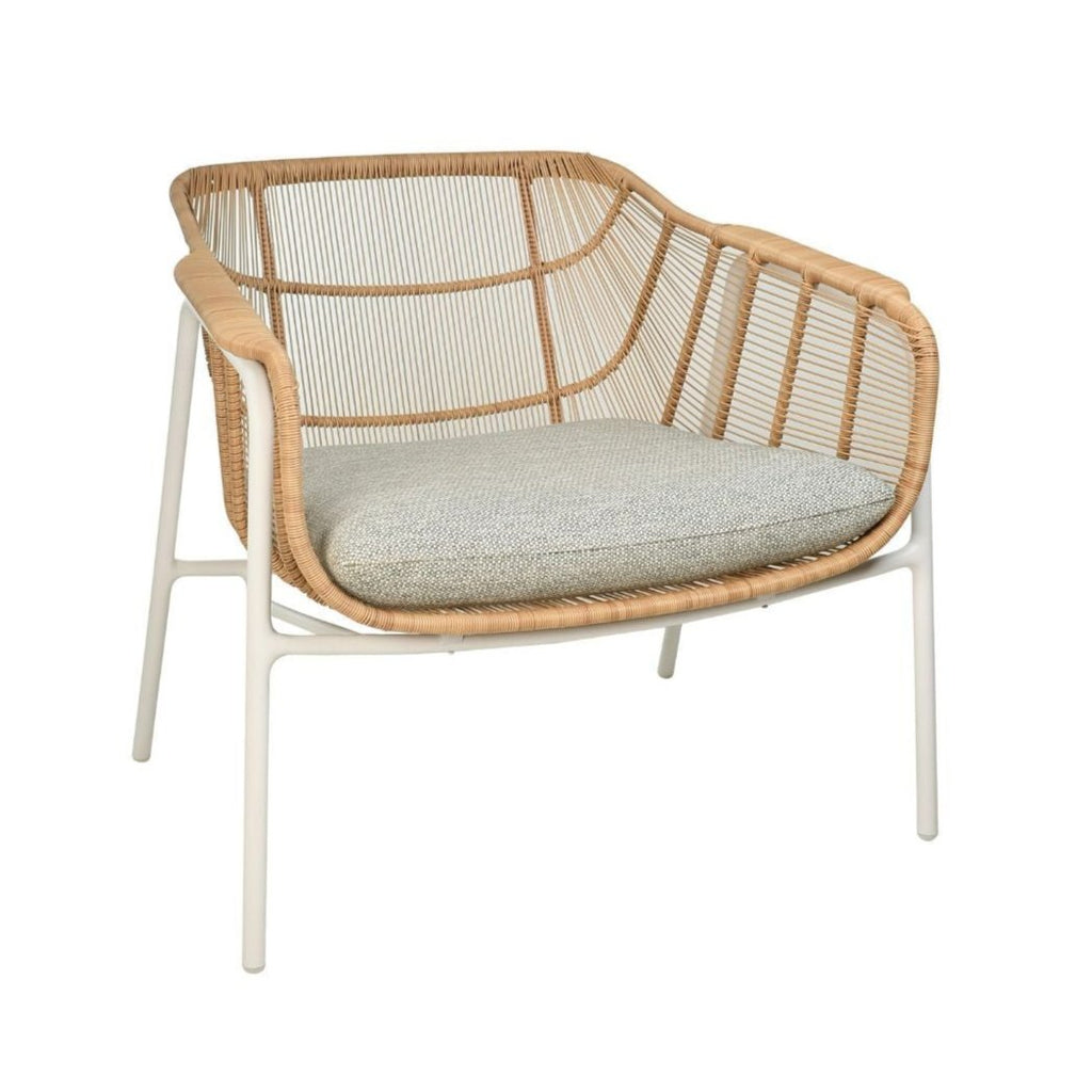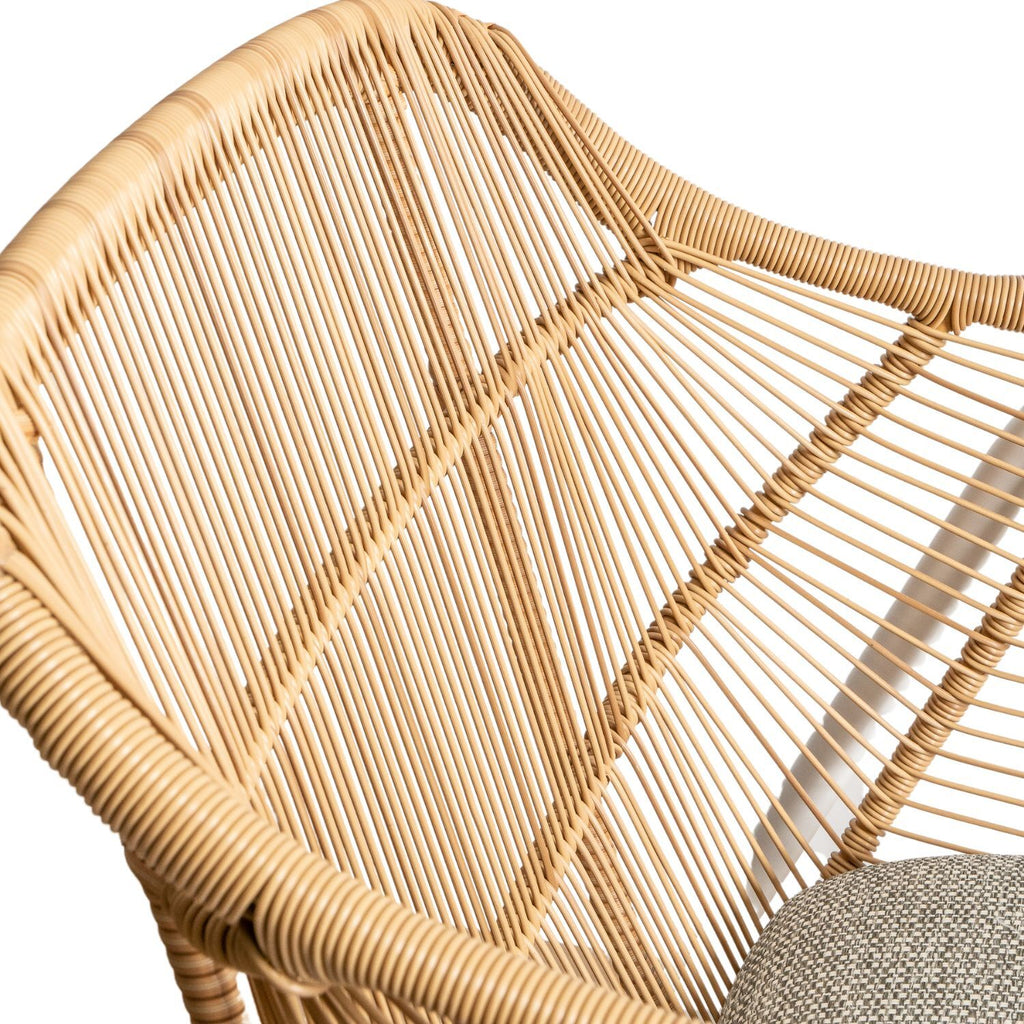 Its cushioned seat adds extra comfort, making it a stylish fit for any outdoor space.