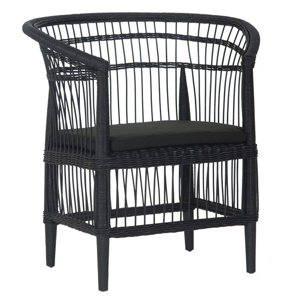 CLODETTE CURVED ARM DINING CHAIR | ELM WOOD +RATTAN | BLACK