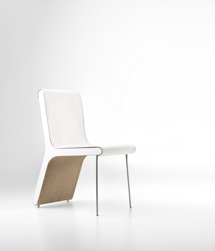 Slipcover options are washable regenerated cotton or eco-leather, with velcro tape for easy attachment and removal.