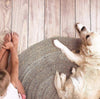 Our circular Seagrass Carpet made with raffia, sisal and palm is left natural in color.