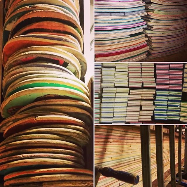No matter how old a skateboard is, the colors of those old seven plies are still full of life. By recycling skateboards, the brand not only combines the colorful look and strength of seven-ply maple into sustainable furniture designs, it also gives those old rides a new life. Instead of letting them fade in the dark, let those seven plies shine in your studio, office or home. Every piece of furniture has its own story to tell.