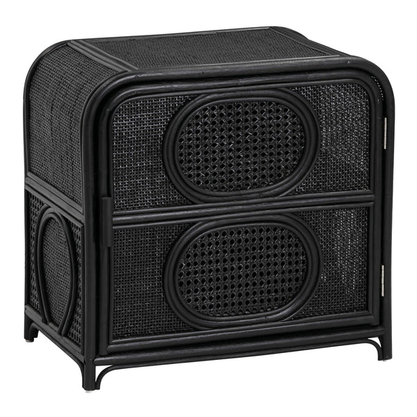 ELLA (BED)SIDE TABLE | RATTAN +CANE | 2-SHELF | BLACK