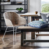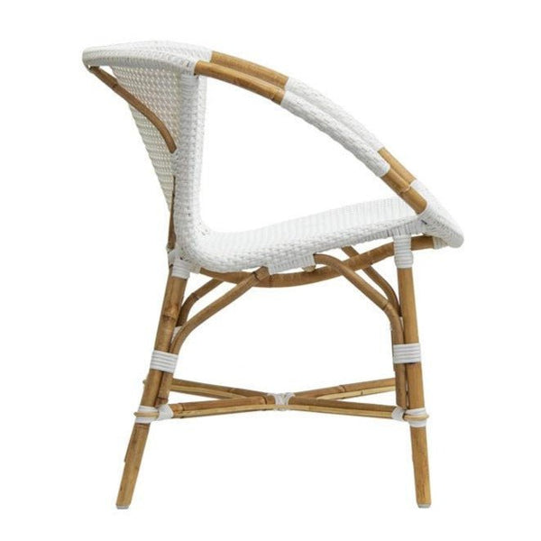 The Palm Springs Tahitian Chair features Grey lacquered Rattan and White powder coated Iron legs. Please note this style is not weather or water-proof.