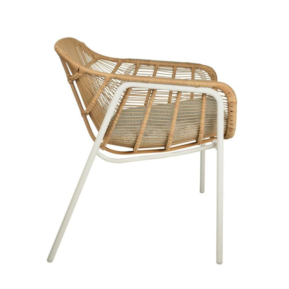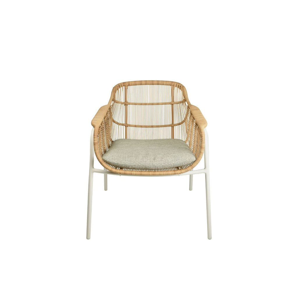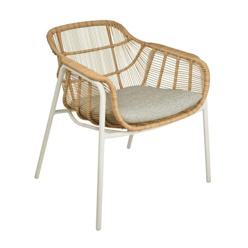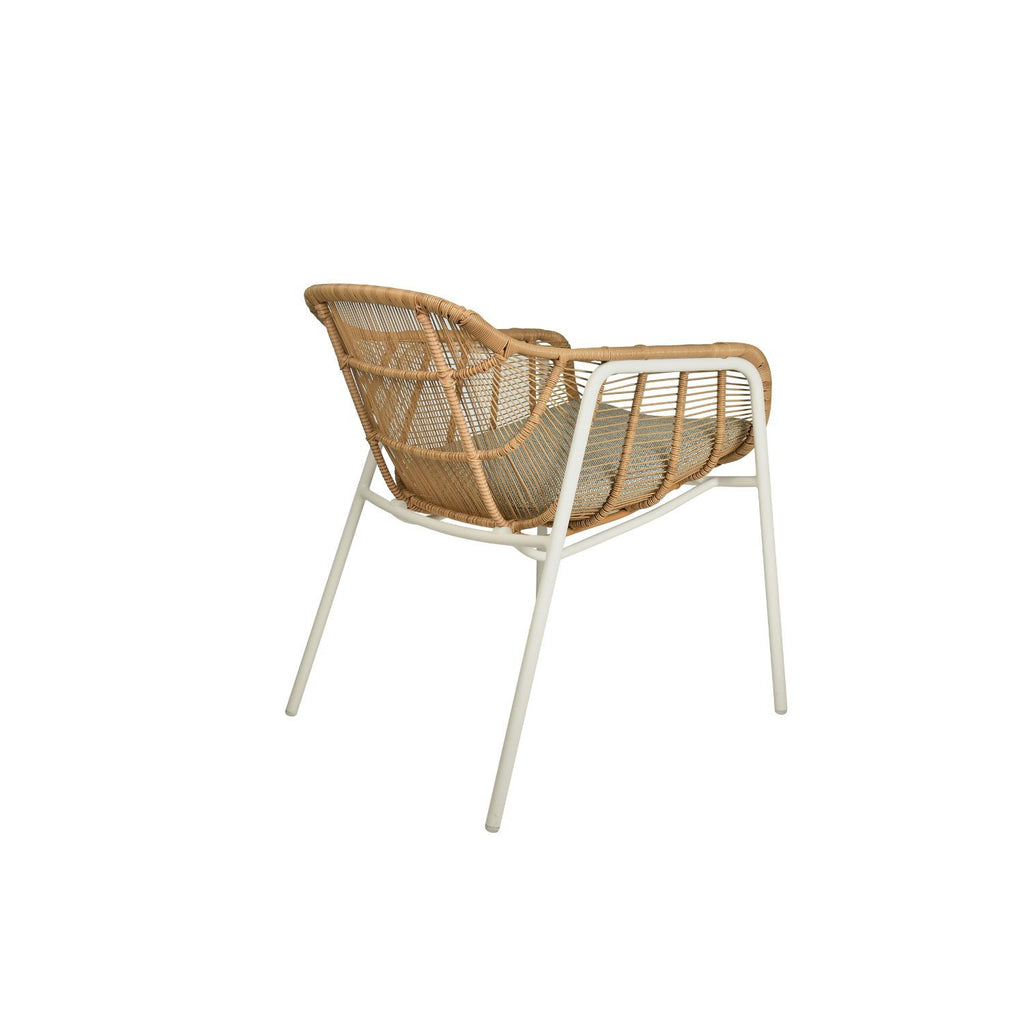 Its cushioned seat adds extra comfort, making it a stylish fit for any outdoor space.