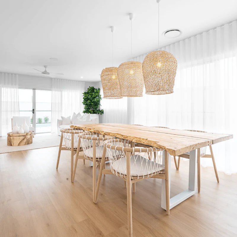Handmade from woven banana fibre this beautiful Uniqwa Furniture pendant certainly makes a statement. Because each pendant is handmade from an organic fibre each piece is slightly different and original.