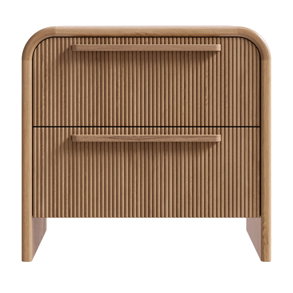 This bedside table blends classic retro design with modern flair, featuring clean, rounded lines and the timeless beauty of oak. With two spacious drawers equipped with hidden soft-close sliders and elegant oak handles, it offers both style and practicality. Perfect for storing your nightly essentials, the Flynn Bedside enhances your space with its elegant simplicity and functional charm. Elevate your bedroom decor with the Flynn Bedside – where retro inspiration meets contemporary refinement.