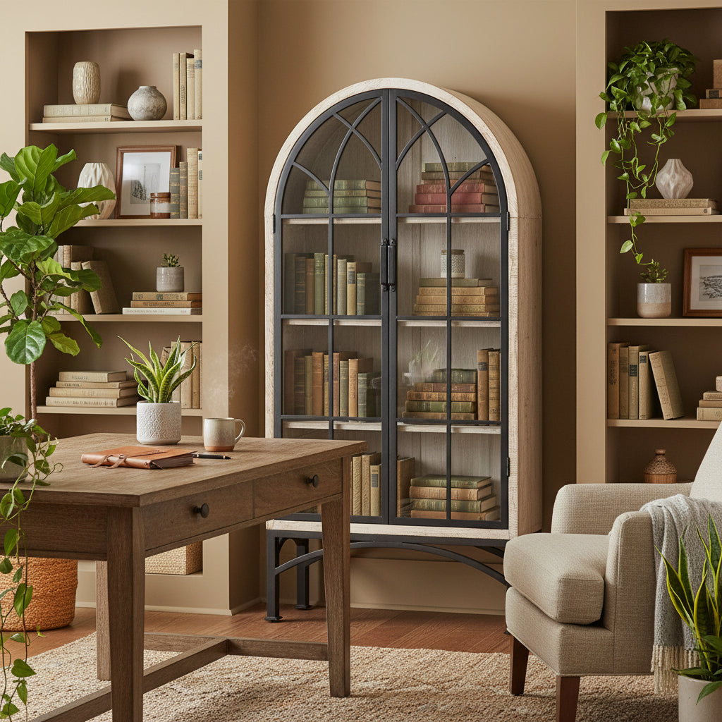 This robust, mixed-material cabinet displays all your valuable pieces with such style! Books in an office, china and glassware in a kitchen, photos and decor in a living room...you name it!