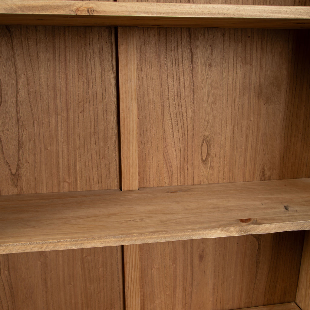 It's made of rustic reclaimed pine wood with removable shelves, a hand-forged iron base and cathedral windowpane framing on its glass doors. A one-of-a-kind work of natural art with unique variations in color and grain pattern, its reclaimed-wood construction guarantees that no two pieces are alike.