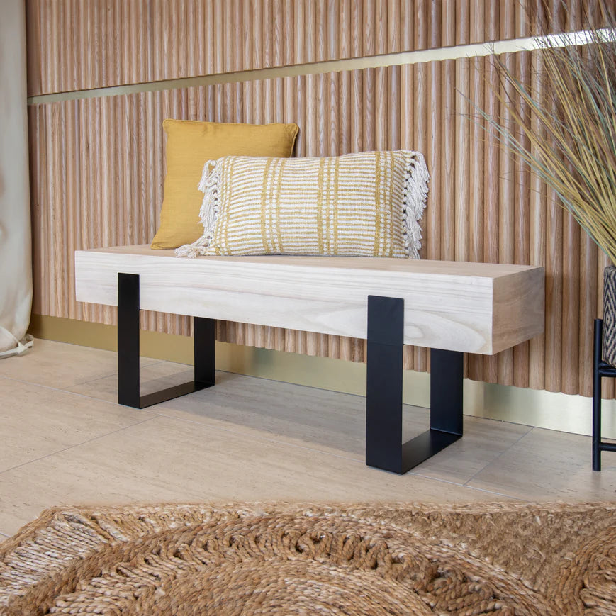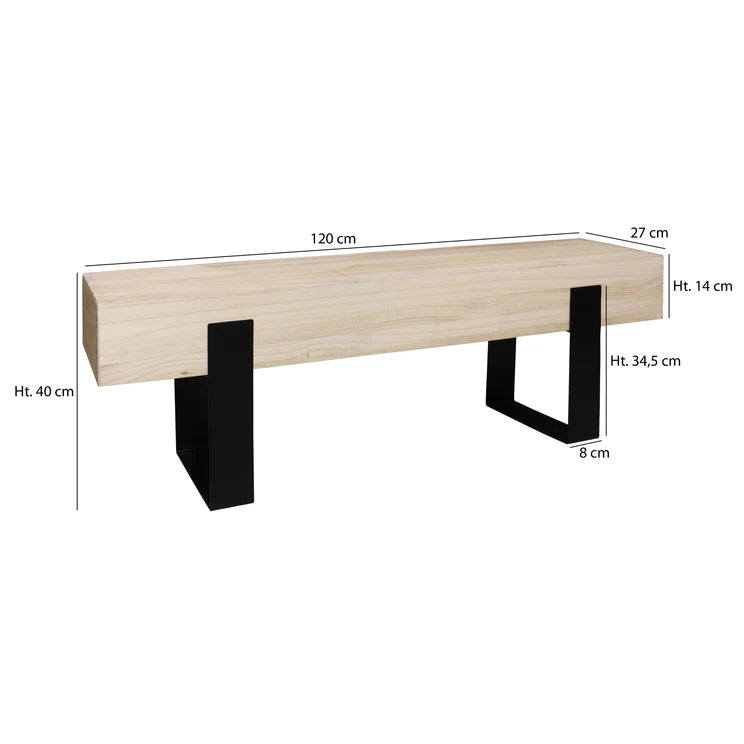 Each piece is unique, with subtle variations in the wood grain that add a warm, artisanal touch to your space. With generous dimensions of 120x29x40 cm, the ORA bench offers remarkable versatility. Maintaining the bench is a breeze. The paulownia wood resists humidity variations well, while the black metal is easy to clean.