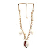 Our beautiful Big White Cowrie Necklace is roped with cotton and adorned with large clustered shells. An impressive and fashionable addition to your summer outfit. Looks also lovely hung on the wall. Our Shell Necklace will sure be a favorite piece in your own home as it is in ours!