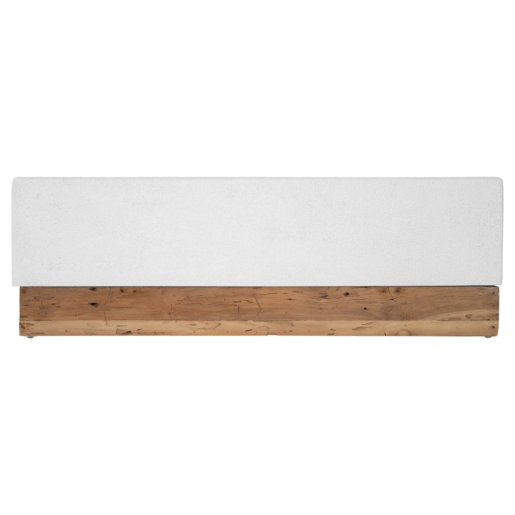 • Materials: Main Finishing: Made with a cement and resin mix top over a reclaimed railway sleeper base. Frame Composition: The cement and resin mix is sealed with waterproof and stain proof treatment and painted white