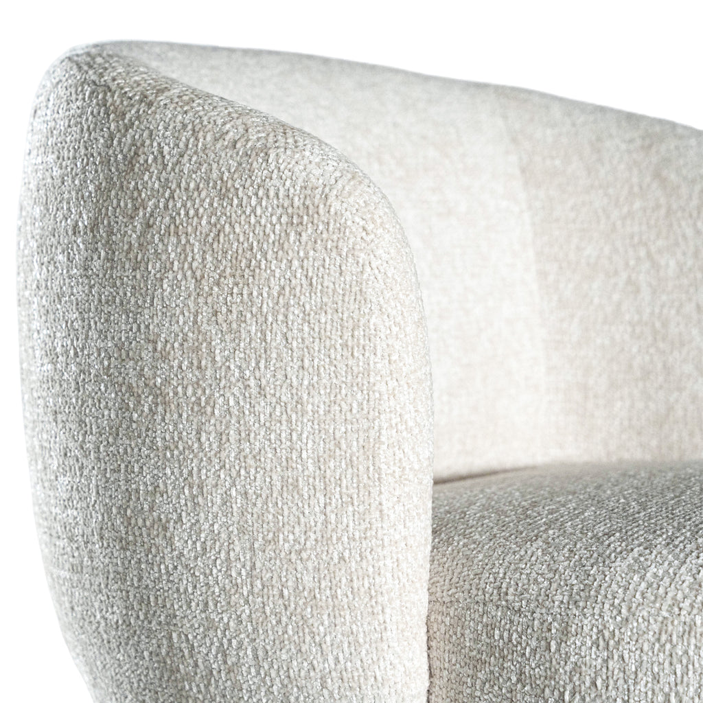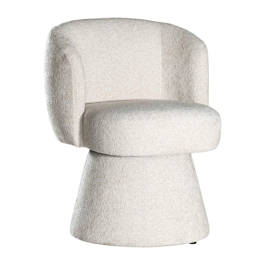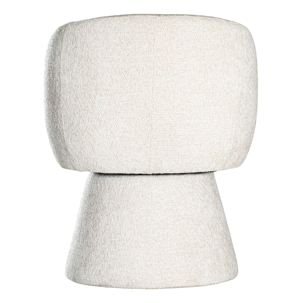 Fully upholstered, the chair features a soft texture that complements its smooth, rounded silhouette. The seamless matching stitching adds a refined touch, enhancing the chair's minimalistic yet sophisticated appeal.