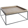 The Mariner Coffee Table features black stream-lined Iron legs with a square tray top in Mango Wood that has been sand blasted for a vintage finish, the result is character filled nautical inspired table.