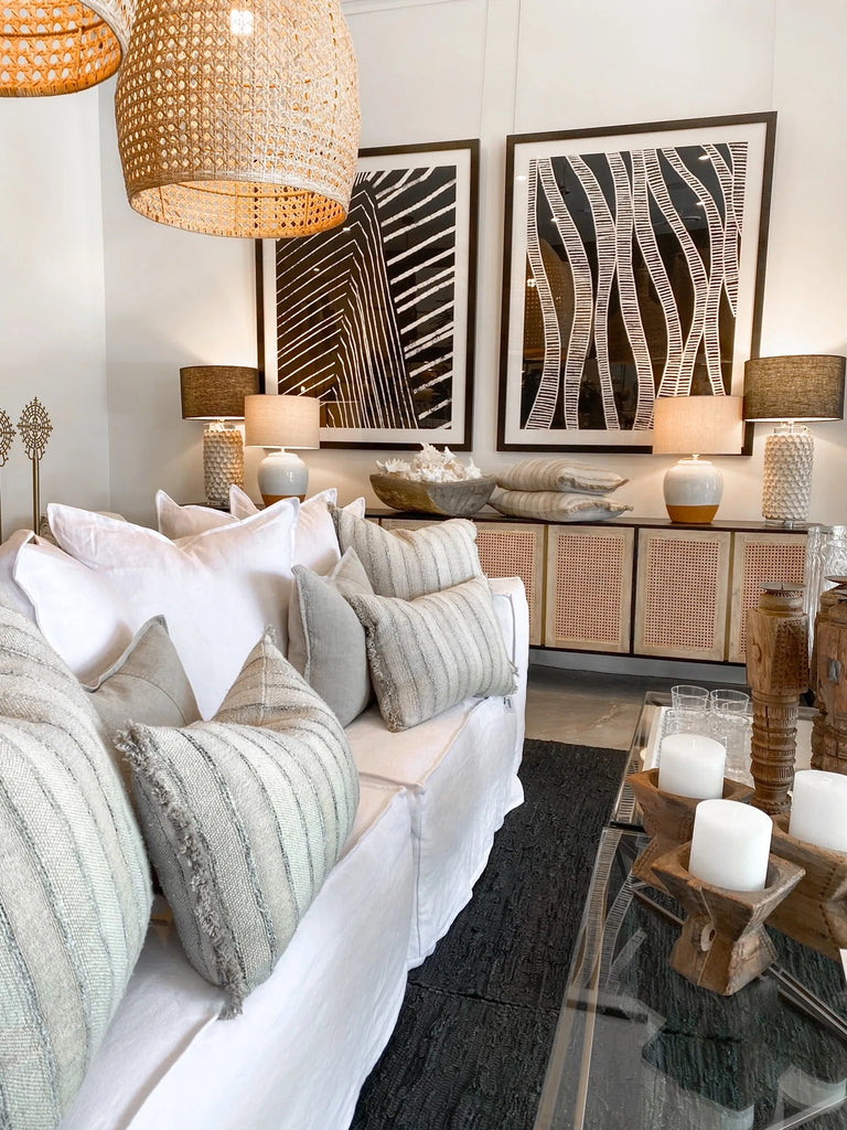 With a hand-woven rattan weave, in a classic net pattern, the Uniqwa Rita range transforms any interior into an organic-inspired space. The clear lacquer top coat enhances the natural hues of the wicker accents which suits any color palette.
