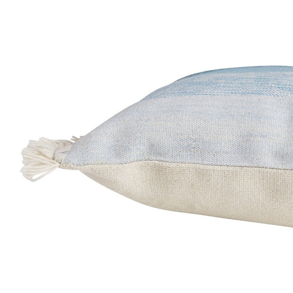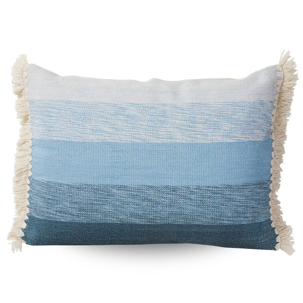 The Southampton Seas Outdoor Cushion Cover features a natural base with a wide textured stripe design in a cool colour palette of marine blues, pearl and khaki.