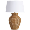 This lamp features a beautifully handwoven rattan base, showcasing organic curves and natural tones that effortlessly blend with any décor.
