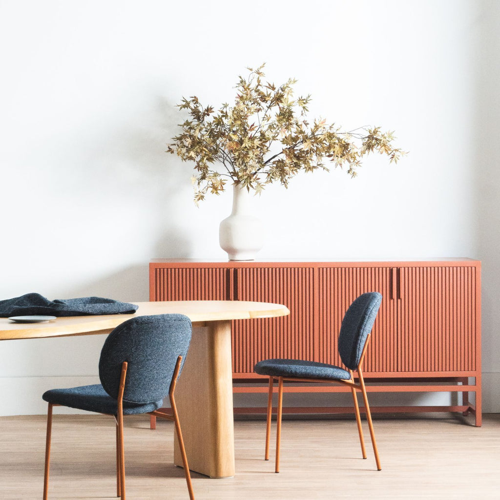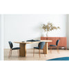 The Jett dining chair invites you to indulge in a relaxed luxury experience every time you take a seat, with its gently contoured curves and sloping backrest that embrace your body for added comfort.