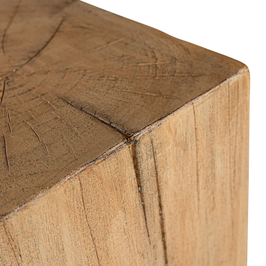 Its minimalist cube shape makes it a versatile piece, ideal as a stool, side table, or decorative accent. The Kuzuh range natural colour effect captures the essence of raw, organic beauty, seamlessly blending into any outdoor or indoor setting for a modern, earthy aesthetic.