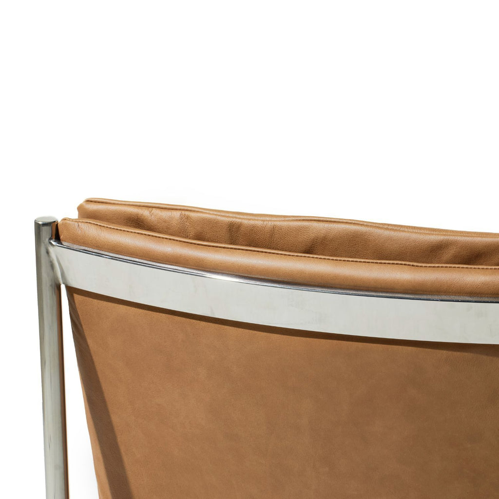 The combination of a polished stainless steel frame and ashwood accents creates a sleek, contemporary look with a touch of warmth. Crafted with high-quality materials, including sturdy stainless steel and solid ashwood, ensuring long-lasting strength and stability. The generously padded seat and backrest, upholstered in premium leather, provide exceptional comfort for extended lounging.