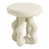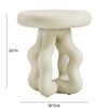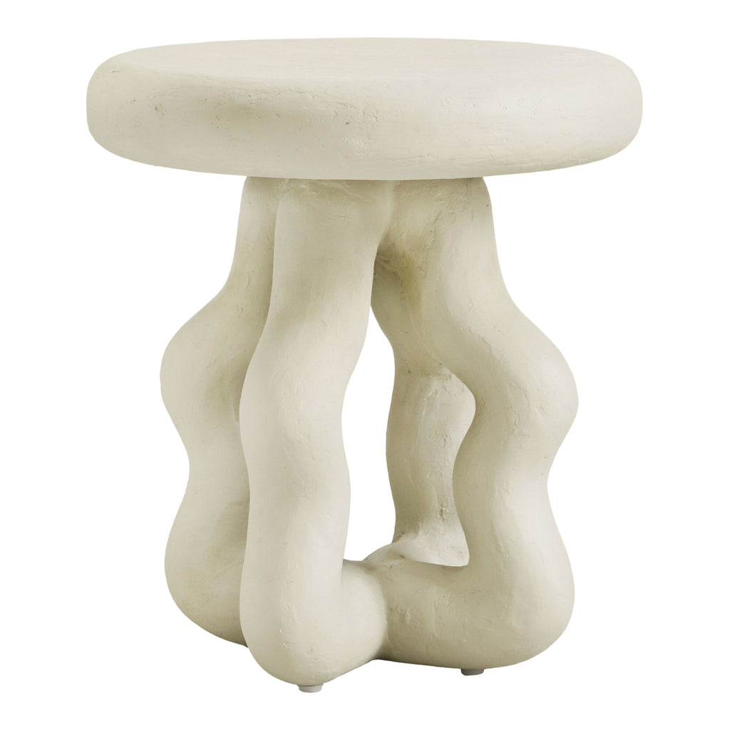Handcrafted of creamy faux stone, the textural Sarno side table contrasts a shapely pedestal base of wavy legs with a round surface.
